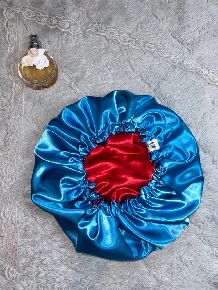 Introducing our exquisite creation with DOUBLE SATIN! Meet Tropical Striker a stunning red & turquoise satin reversible bonnet that not only safeguards your hair but also lets you style it your way with two color options.